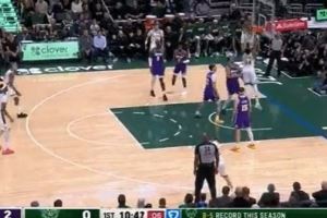 > 一记重锤!字母哥空切篮下 碾过东契奇双手暴扣!