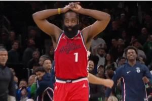> 险些封神!哈登最后19秒已连得9分 完美战术压哨出手弹筐而出!