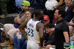 > 场边一位球迷和追梦怼脸发生口角 未被驱逐但被裁判红牌警告!